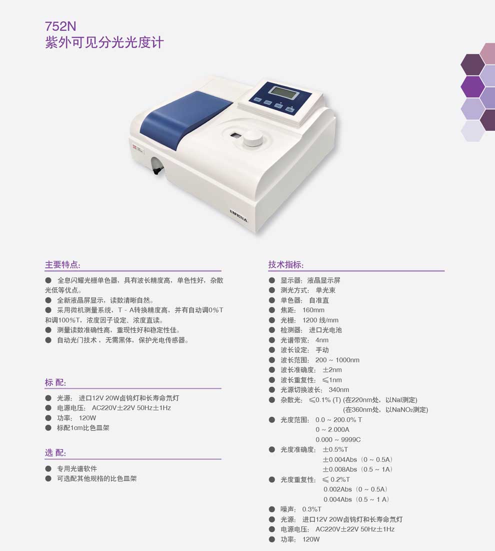 ● 光源: 高性能12V 20W卤钨灯和长寿命氘灯