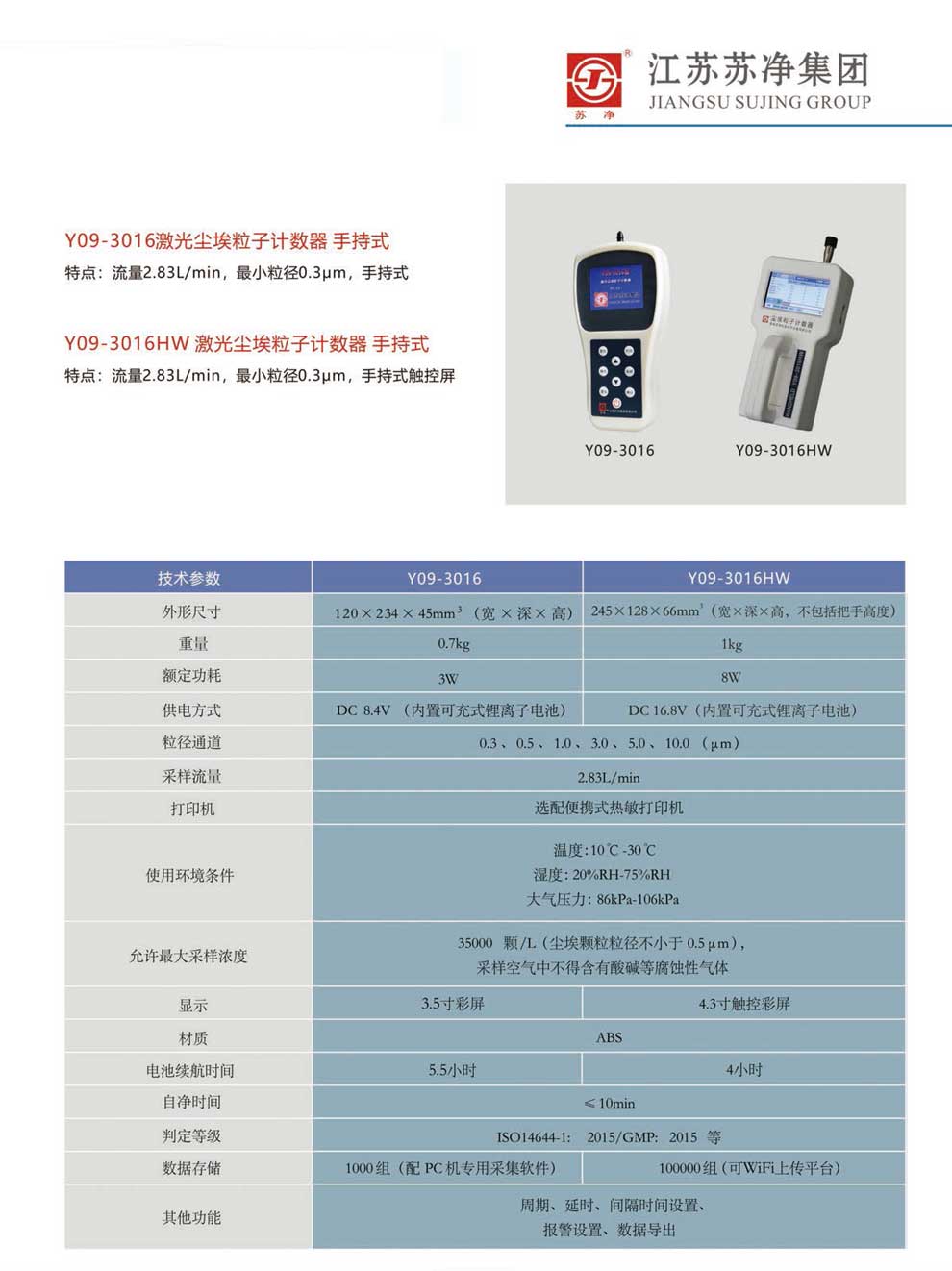 | Y09-3016手持式/Y09-3016HW手持式触控屏 激光尘埃粒子计数器--苏州苏净 |