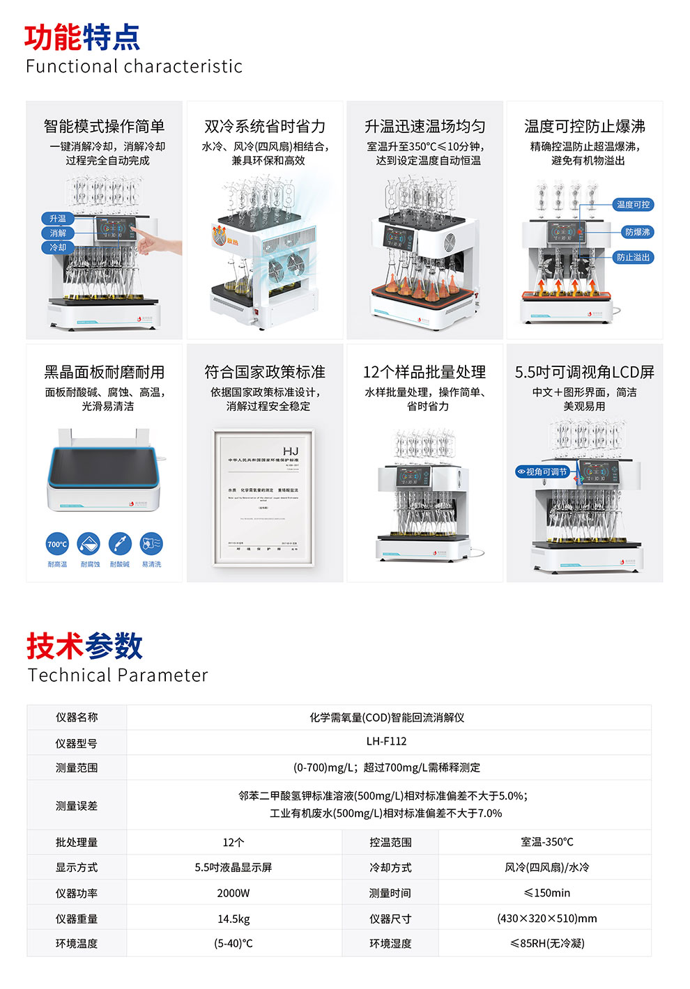 9.符合国家标准《HJ 828-2017 水质 化学需氧量的测定 重铬酸盐法》要求,消解过程安全稳定。 |